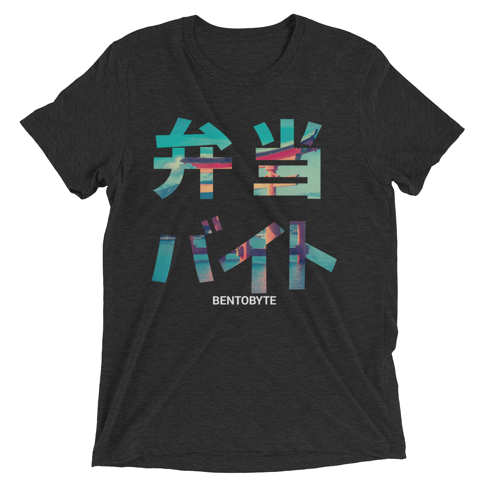 弁当バイト is BentoByte in Japanese. All printed on a comfortable Bella + Canvas 3413 Triblend Short Sleeve T-Shirt.